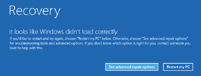 Windows will be sitting at this Recovery screen below. Select “See advanced repair options”.